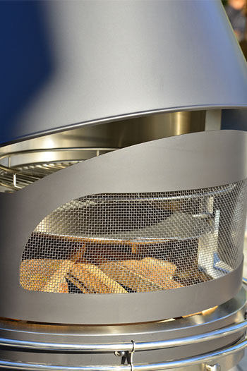 Bei dem Umgang mit Feuer sind Schutz und Sicherheit die wichtigsten Punkte die beachtet werden müssen. Damit man sich in Ruhe zurücklehnen kann während man das Feuer geniesst, bietet die Funkenschutztür Schutz und Sicherheit. Die Gaze lässt die Wärme des Feuers mit Leichtigkeit durch, jedoch blockiert Feuerfunken den Weg durch die Tür. Die Funkenschutztür gibt es lackiert je nach Farbe des Gartenkamins. Die Funkenschutztür kann man in 304L (1,4307) Edelstahl und 316 (1,4401) Edelstahl bekommen.
